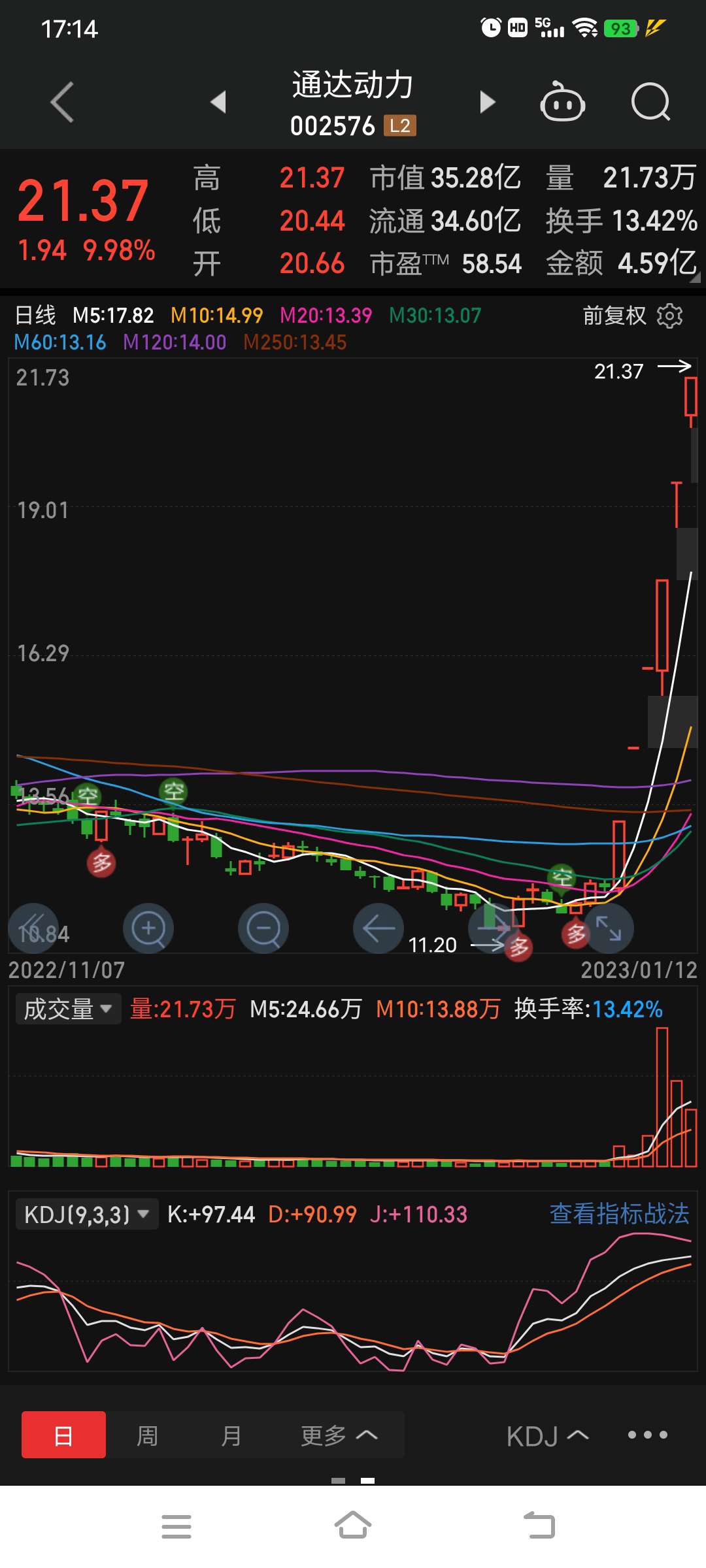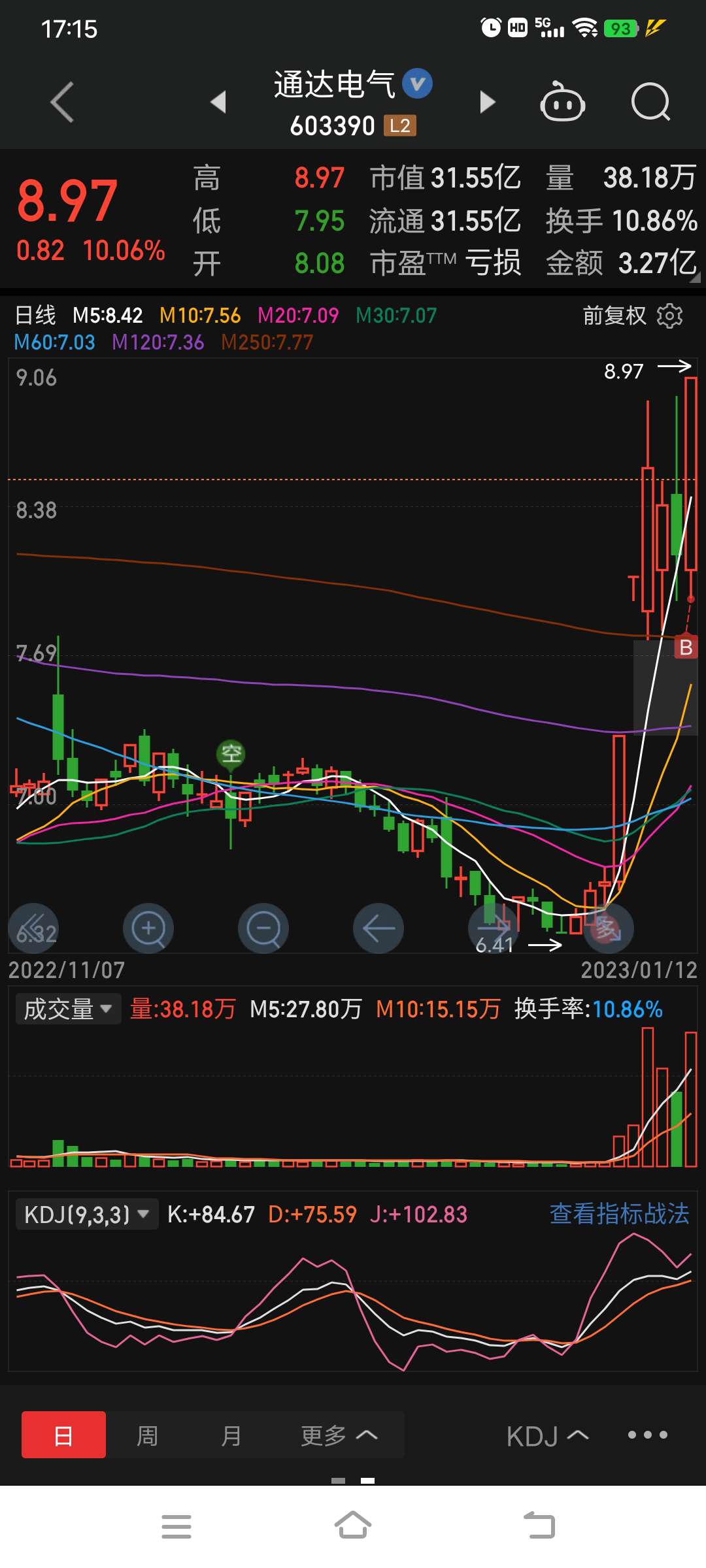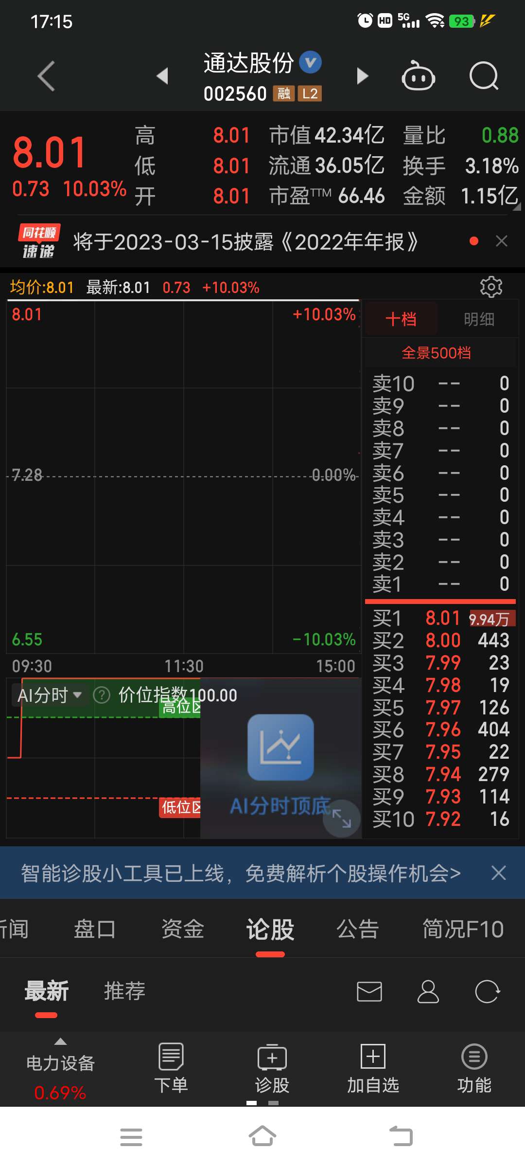 您可以在发文时单击您添加的个股,选择“看涨”或“看跌”,以发表对个股走势的看法